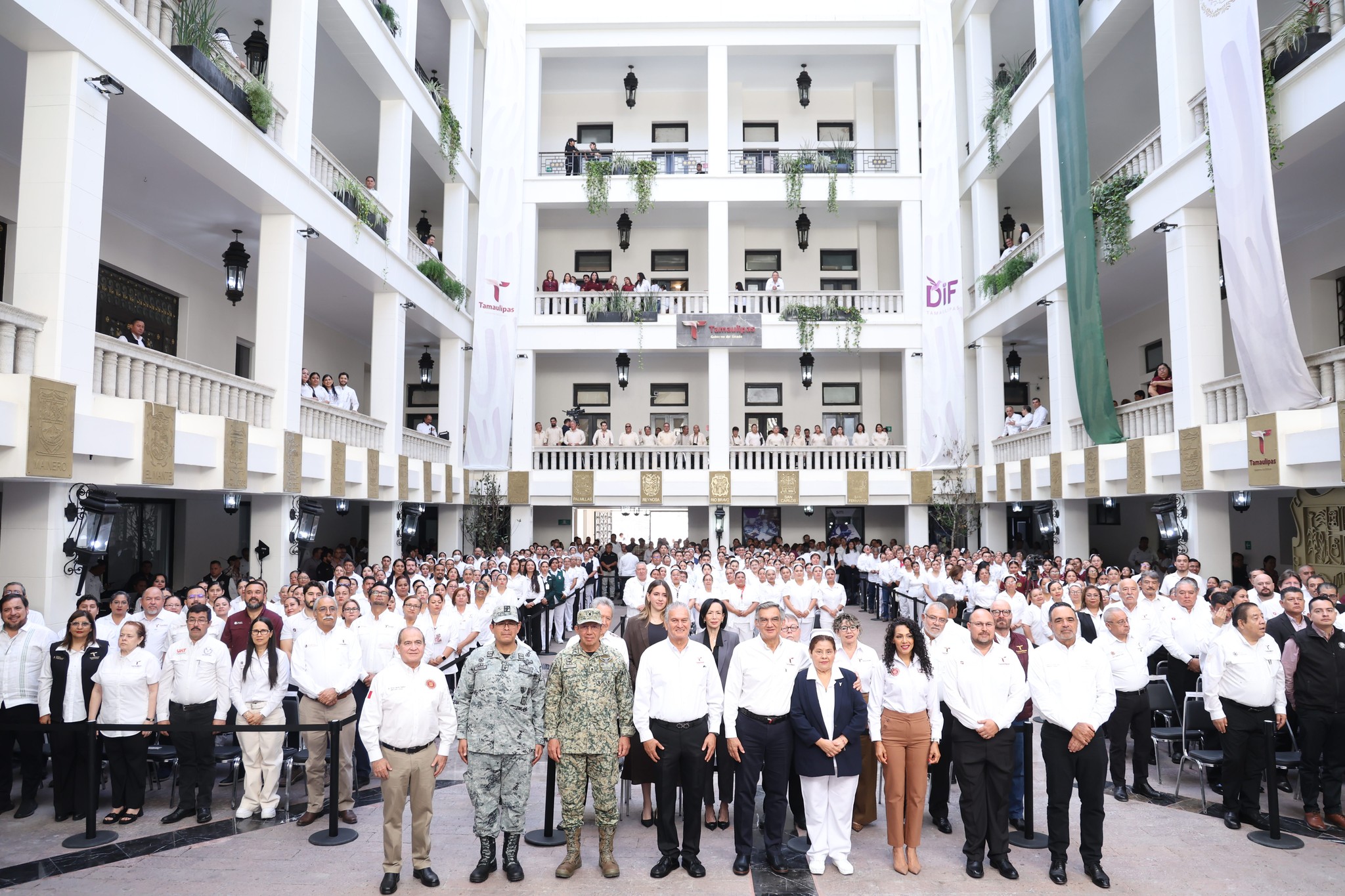 También acompañaron al gobernador en esta ceremonia cívica: Héctor Joel Villegas González, secretario general de Gobierno; diputada Cynthia Jaime Castillo, presidenta de la Mesa Directiva del Congreso; diputado Víctor Manuel García Fuentes, presidente de la Comisión de Salud; magistrado Hernán de la Garza Tamez, presidente del Supremo Tribunal de Justicia; general Enrique García Jaramillo, comandante de la 48 Zona Militar, y el general Francisco Alvarado Terán, coordinador de la Guardia Nacional en Tamaulipas, además de funcionarios del gabinete estatal y personal de enfermería de diferentes unidades médicas.